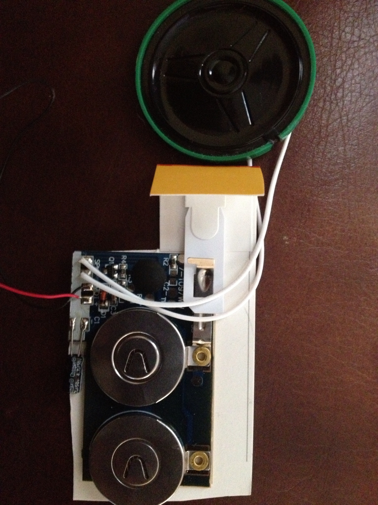 So I got a sweet Batman Birthday card that plays a short clip of the Bat Theme when I open it. Then I cut the card open with my knife cause I wanted to see how they did it. So my question is I want to make something like this that has a simple trigger that will play one sound when the switch is opened, but so far the only thing I've seen is I have to buy a MEGA attached to a MP3 Shield etc and $150 later I have the same thing that this $5 card came with.
