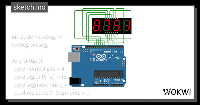sevseg.begin(COMMON_CATHODE, numDigits, digitPins, segmentPins, resistorsOnSegment);