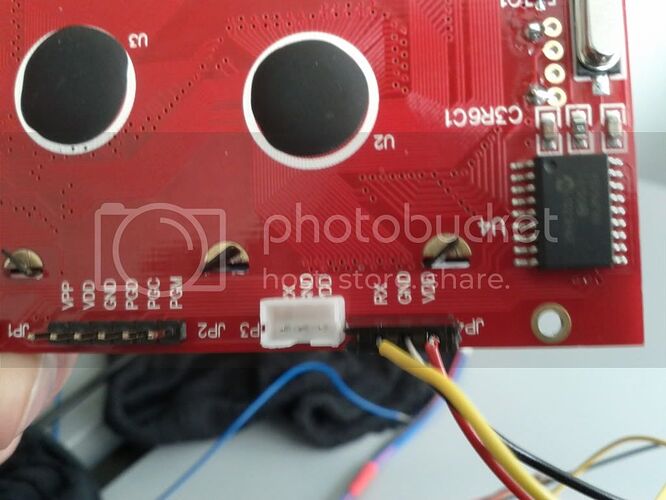 I was updating the software, but the upload "disconnected" the arduino, and when i finally got the new software uploaded the LCD only displays to rows of black fields, on line 1 and 3. It doesn't even show the splash screen when it is connected.