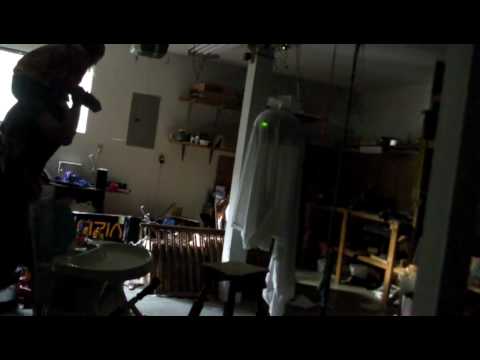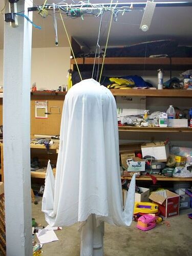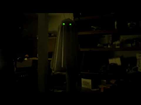 This project is failure. It "follows" your approach with "eyes" and shakes pretty cool. However, stepper motors from CD do not have enough torque to lift ghosts arms. I tried to power them with 12, they get overheated. Besides, when they work, +5 drops on motor shield to +4.5, which affects distance reading from EZ1. (I use 2 power supplies - +9 Arduino and +12 for motor shield)