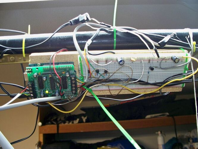 I consider replacing stepper motors with DC. Let's say, turn them on for a few sec, then let arms go down by gravity - make sure motors are idle for 3 or 5 sec. I have DC motors, but not decided how to attach a string to them yet.
