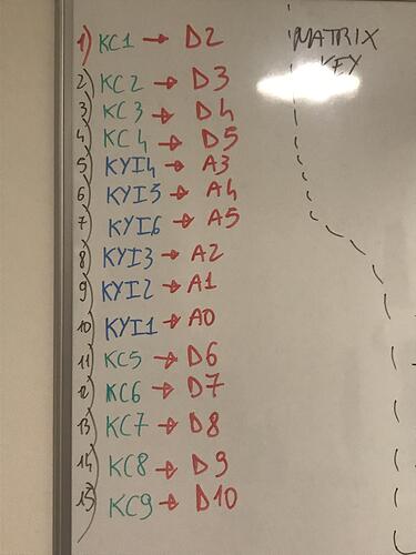Then with the help of the service manual I found which pins in the ribbon cable are the KCs and the KIs: