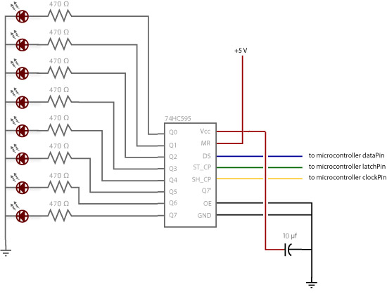 1 10LED light bar (all 16 LEDs running off of 2x74HC595's)