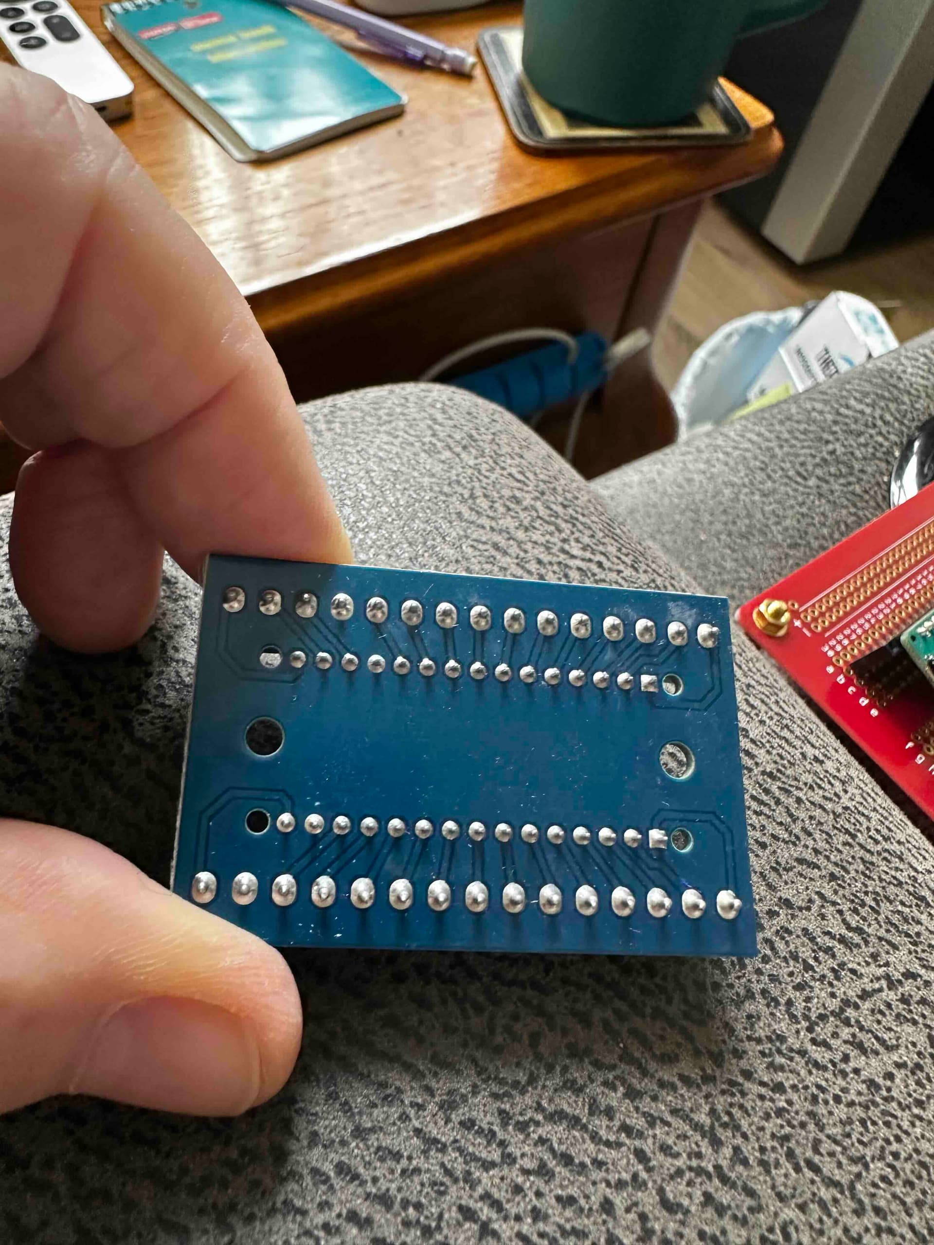 The first one is an off the shelf type. Just plug in the board, then insert bare wires into the screw connectors. NOTE protect the back from shorting, I work on a rubber pad.