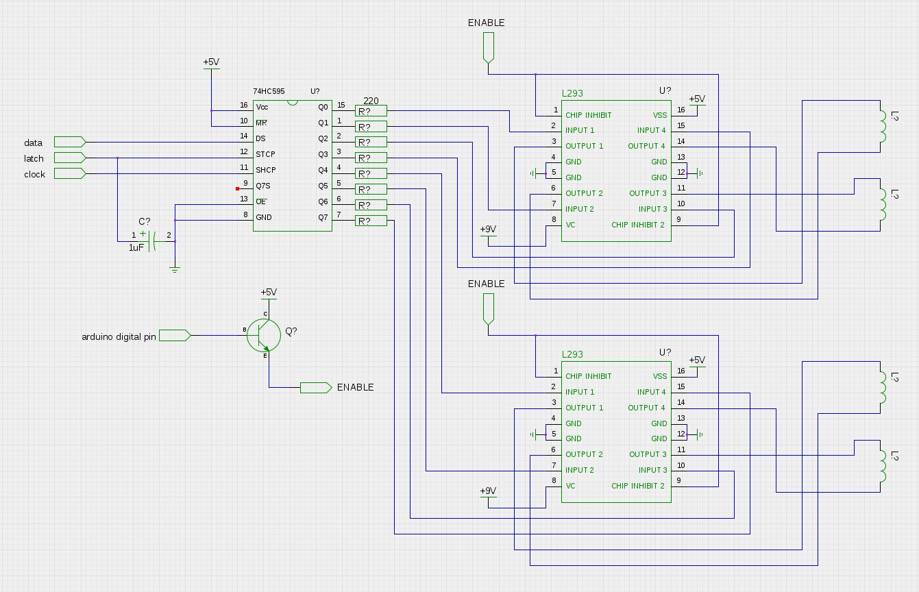 Downloaded its datasheet and drew the attached schematic. Still using the 595 as only 4 solenoids would munch 8(!) of the atmega's pins...