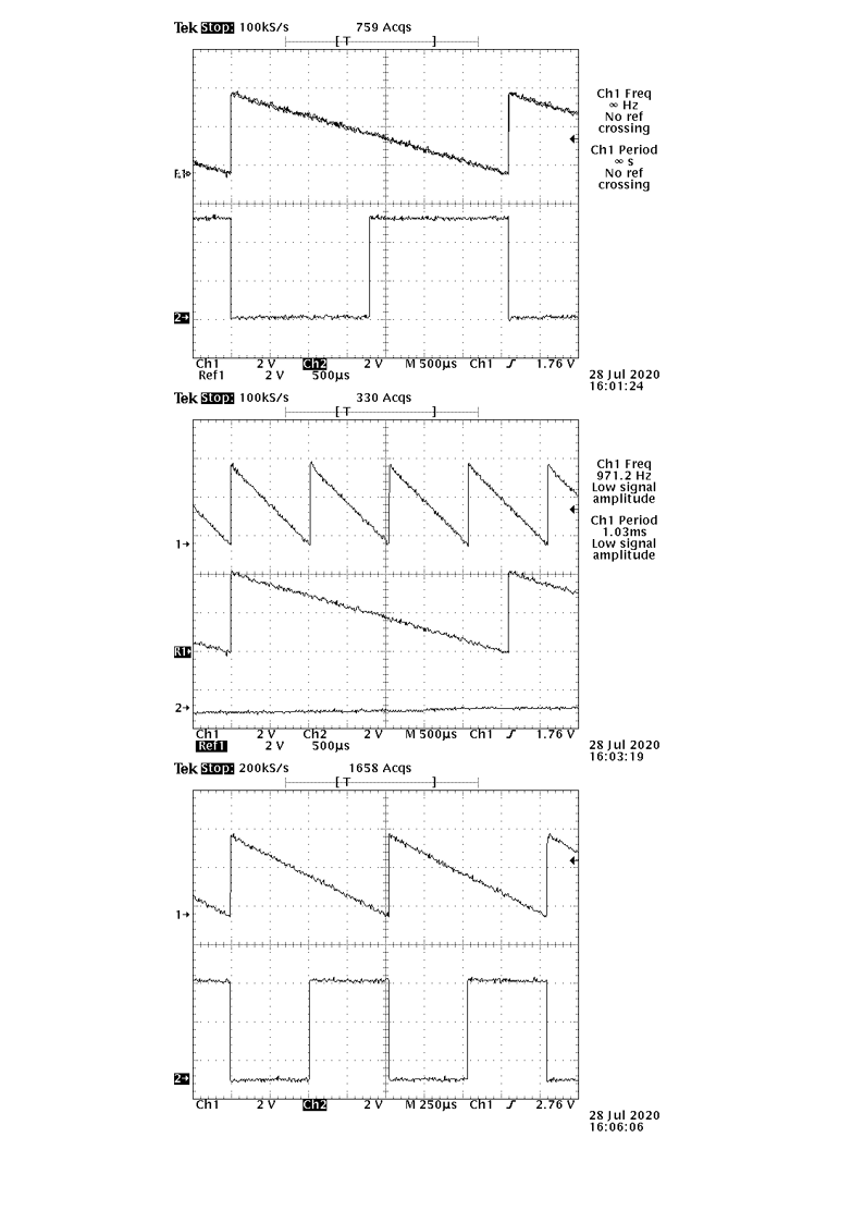 - The saw tooth (Fig 1) whose period of 15 msec could be further improved by a few microseconds if I left the LDAC / signal permanently tied to zero volts.