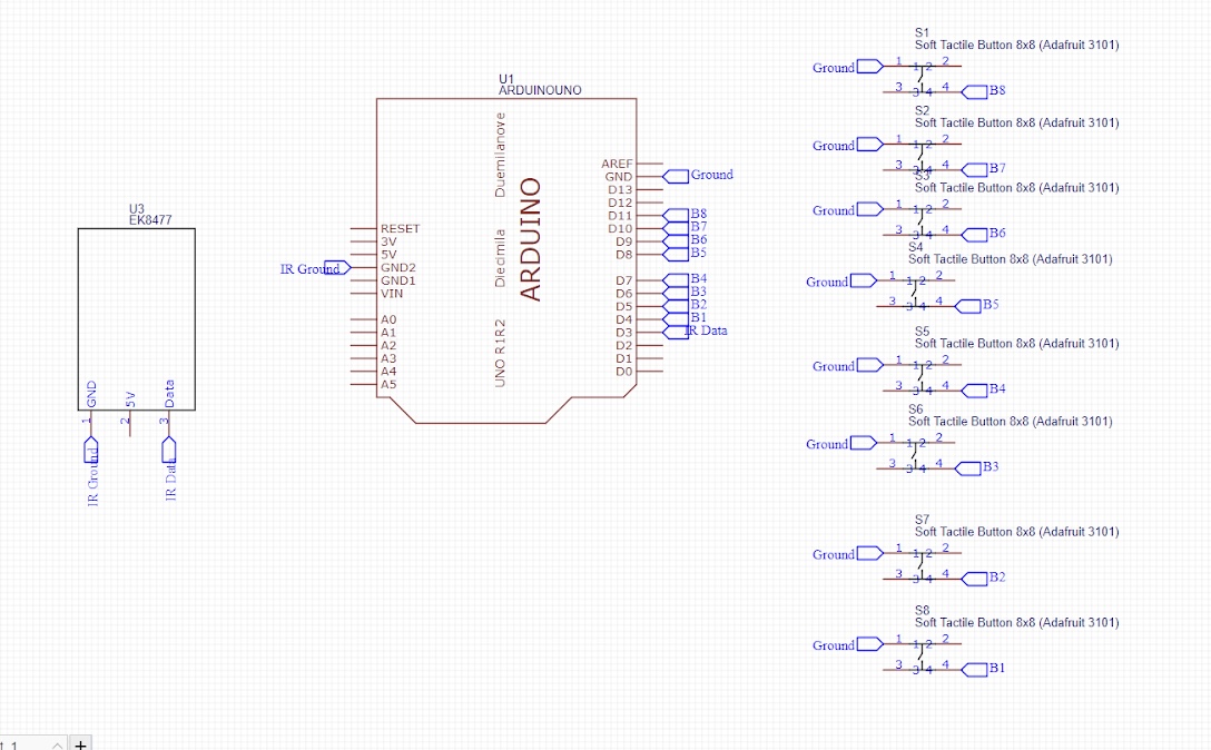 All of this has been tested and works awesome... except with my shiny new PCB. The signal doesn't seem to be getting through. (Luckily, I tested this with cables before tediously soldering on all the buttons.)