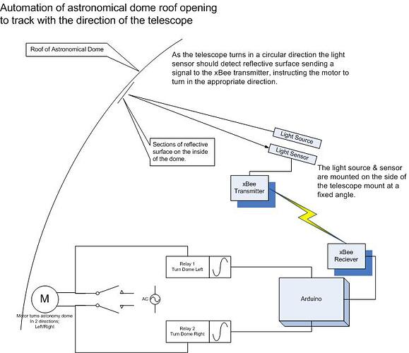 I've thought of creating a continuous tape with positioning codes on the dome but a simple turn left/turn right seems so simple. IOW, the dome should simply move to where ever the scope is pointing.