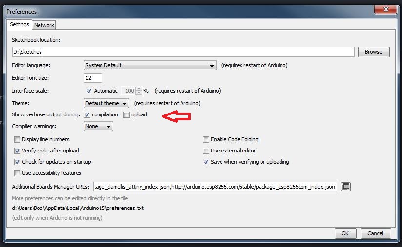 Now, every time that I upload a sketch I get some avrdude diagnostic information about things like port number, baud rate, AVR Part (ATmega328P), chip erase delay etc etc. Then it reads on-chip flash data and finally 'avr done. Thank you.'