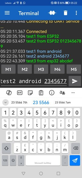 I can send text such as “Hello World” from the Android device to the ESP32S3 and it displays in serial terminal.