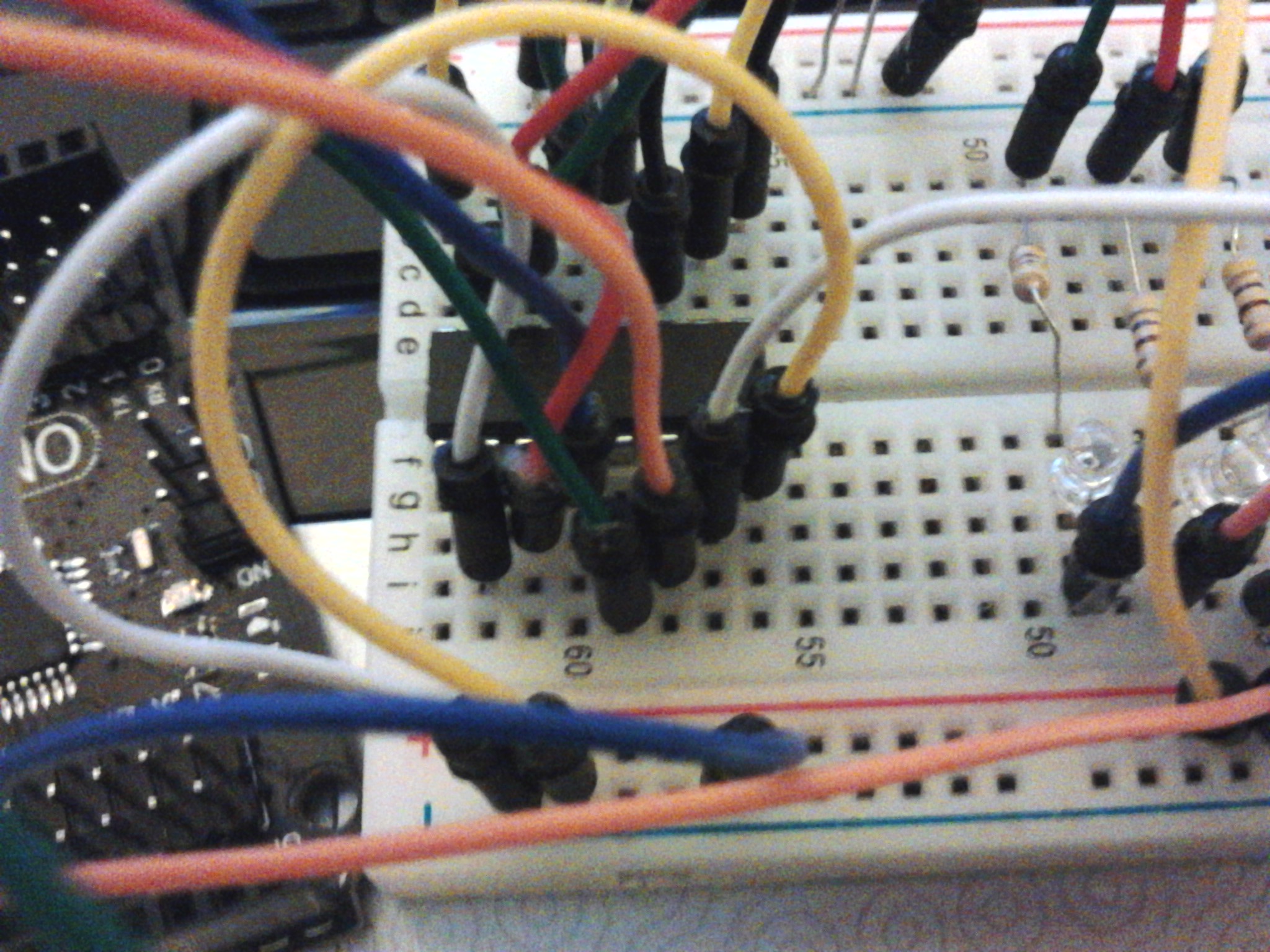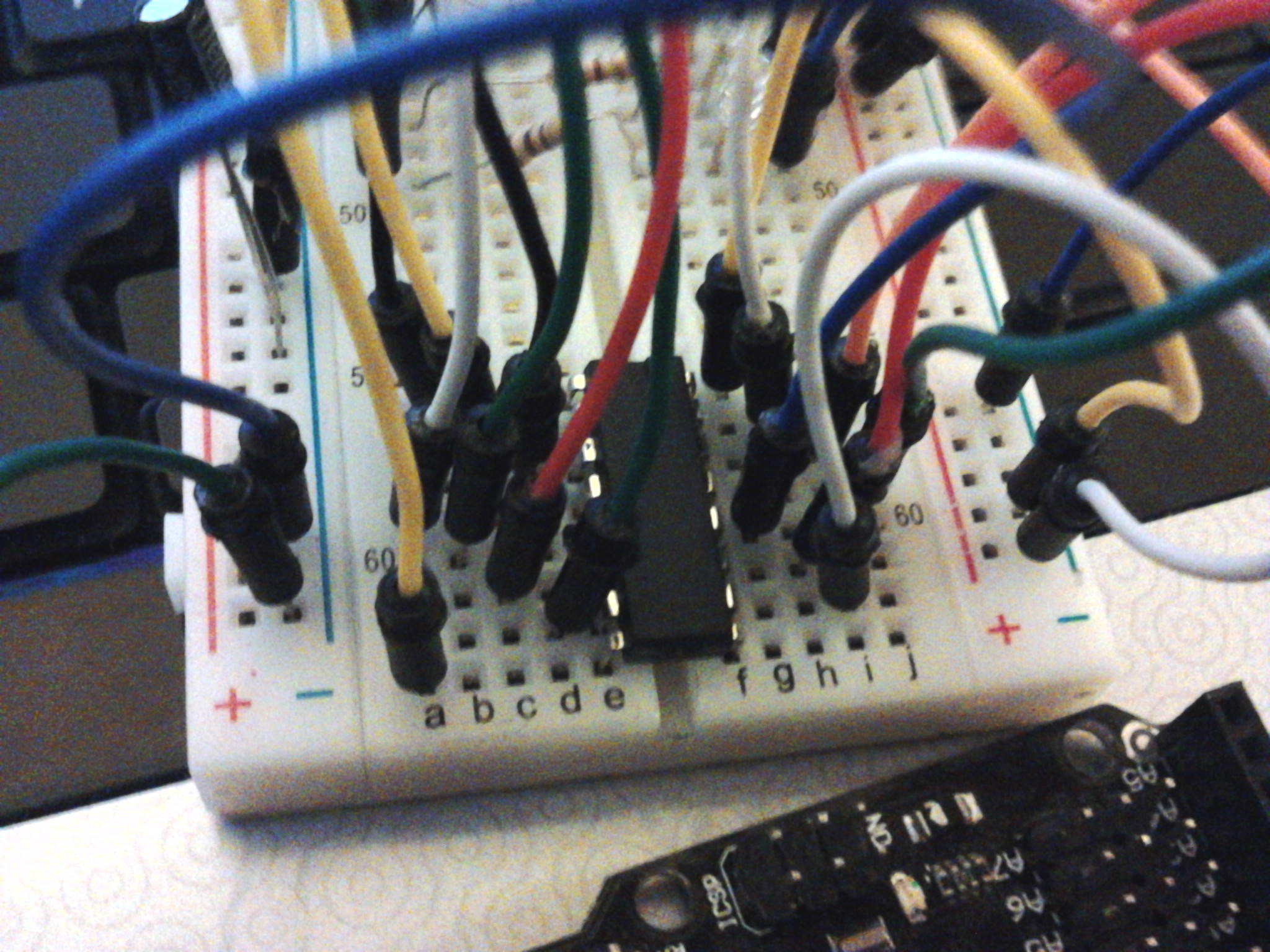 I'm using 0.47 resistors (yellow), but have also tried 0.22 resistors (blue). I have tried 3 different shift registers, using pliers to pick them up.