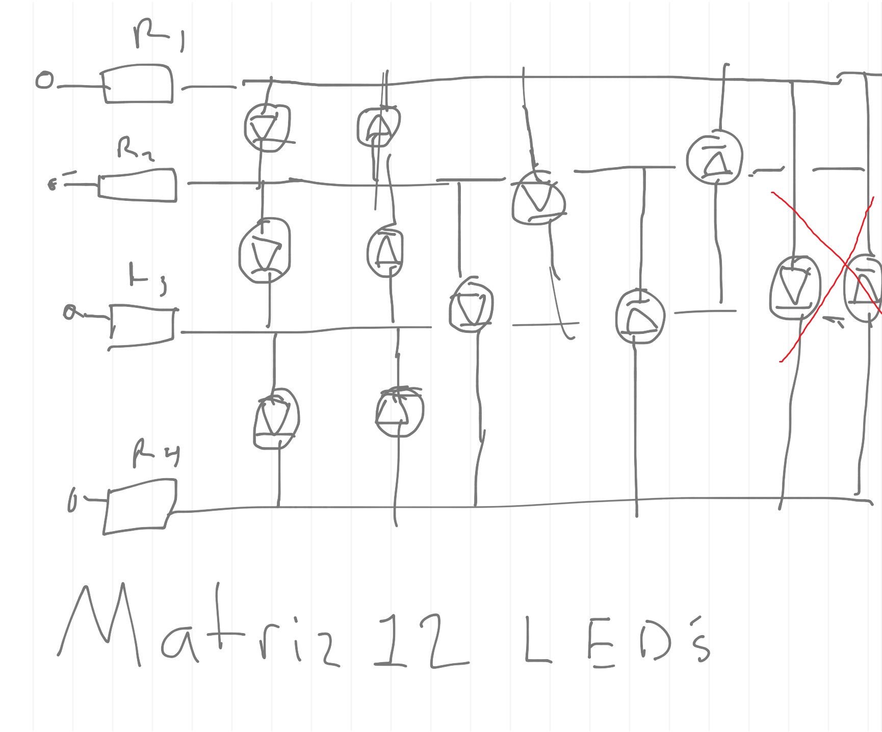 Now as to the code, it is also inefficient to light individual LEDs as steps within the Loop(). The correct approach is to use a timer (checking the millis() value) to periodically, as the loop() continues always to repeatedly cycle, step from one column to the next, switching off the outputs for the previous column, setting up the new row data and then switching on the new column.