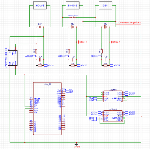 How do I have a common ground? Do I have another link for each GND1,GND2,GND3? Or Common Negative link? And could I end up with a ground loop?