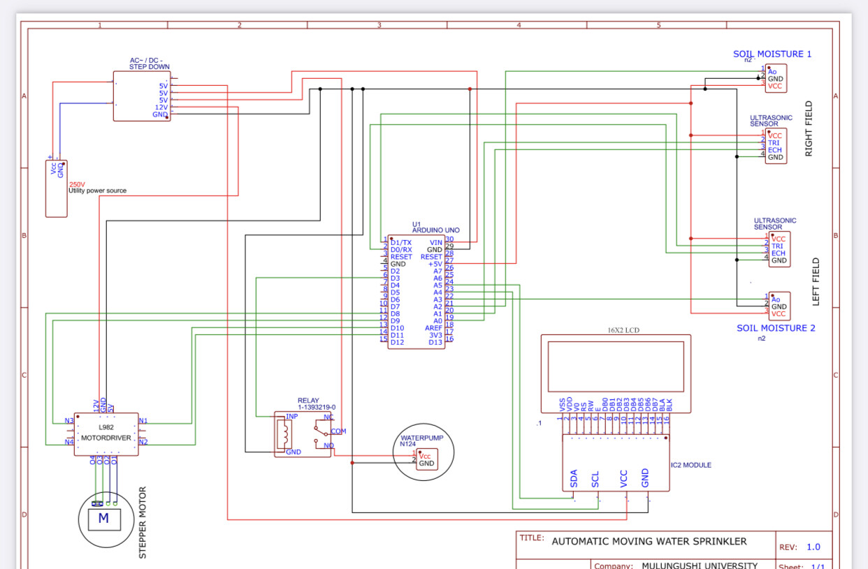 The challenge I’m having with the project  is that everything works accordingly to how I programmed the system when the load connected to relay is not powered.the relay is able to turns on and off when the pump is not connected to its external power source but once I connect the power source to the pump all the sensors and lcd stops working. I’m using a relay as an automatic switch. Below is my circuit diagram. Relay has its Vcc connect to its own 5v source not shown in diagram