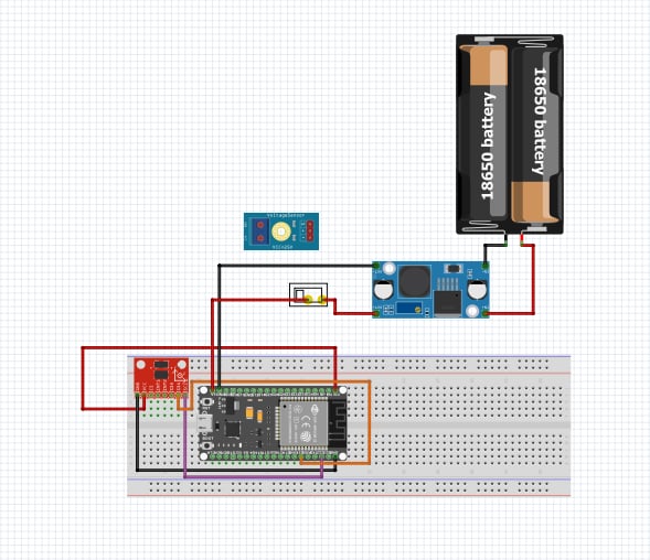 Good day! Will it be alright to ask on how do I connect the buck converter to the esp32 to lower the power provided to 3.3v, then also connect the voltage sensor to the battery for battery health monitoring, and also where should I connect the switch to the esp32 to control the on/off. Also implementing a voltage divider with two resistors (R1-47kohms, R2-10k ohms) This is my schematic diagram, I'm kinda stuck with those