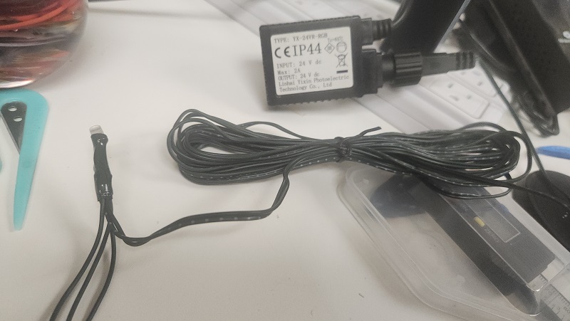 I recently purchased a "Christmas light" led string on Amazon. Its got a little remote that allows different programs of the RGB leds, however, the options are limited. I can set it up so that all the leds are alternating red and green, but it doesn't have an option for fading, twinkling or flashing that I'd like. The led string consists of two wires coming out of the controller, to the first LED, and then 3 wires to each successive led. Without tearing this thing apart, is there anyone that can tell me if it's feasible to put an Arduino on the front end of this string and set up my own code for it? Thanks in advance. . .