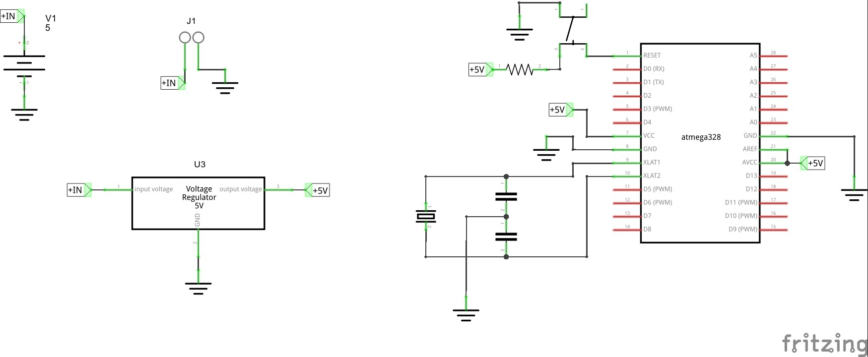 The ground symbol on the left of the '328 is really clogging things up and pushing other wires around. Drag it down below the chip (the ground wire will cross under the other connections) and then rearrange 5V and the other wires to come in straighter.