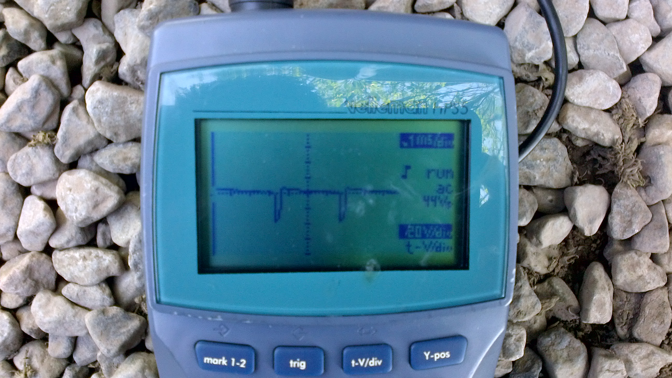 Because of that waveform, though, you can't just read the peak voltage to see what the percent power is set at. You'll want to look at the time when it triggers after the zero crossing.
