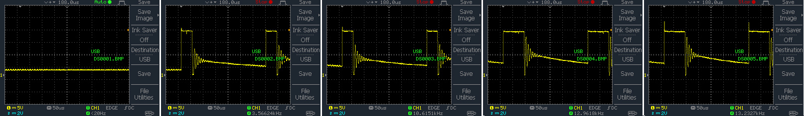 Hi, I think you will find that the five traces show that you have fixed frequency and adjustable duty cycle.