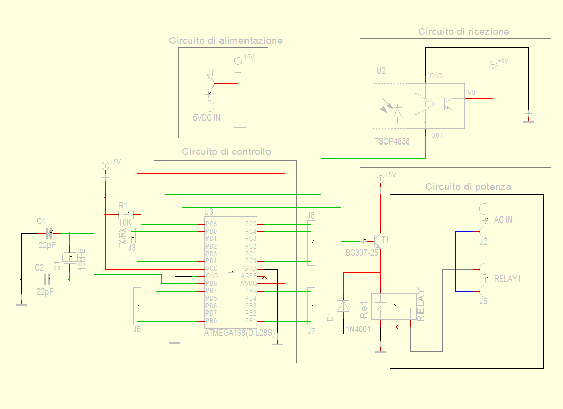 Spero che hai collegato giusto il TSOP perché sullo schema é sbagliato (hai messo i 5V a massa, l' uscita a 5V e la massa come uscita).
