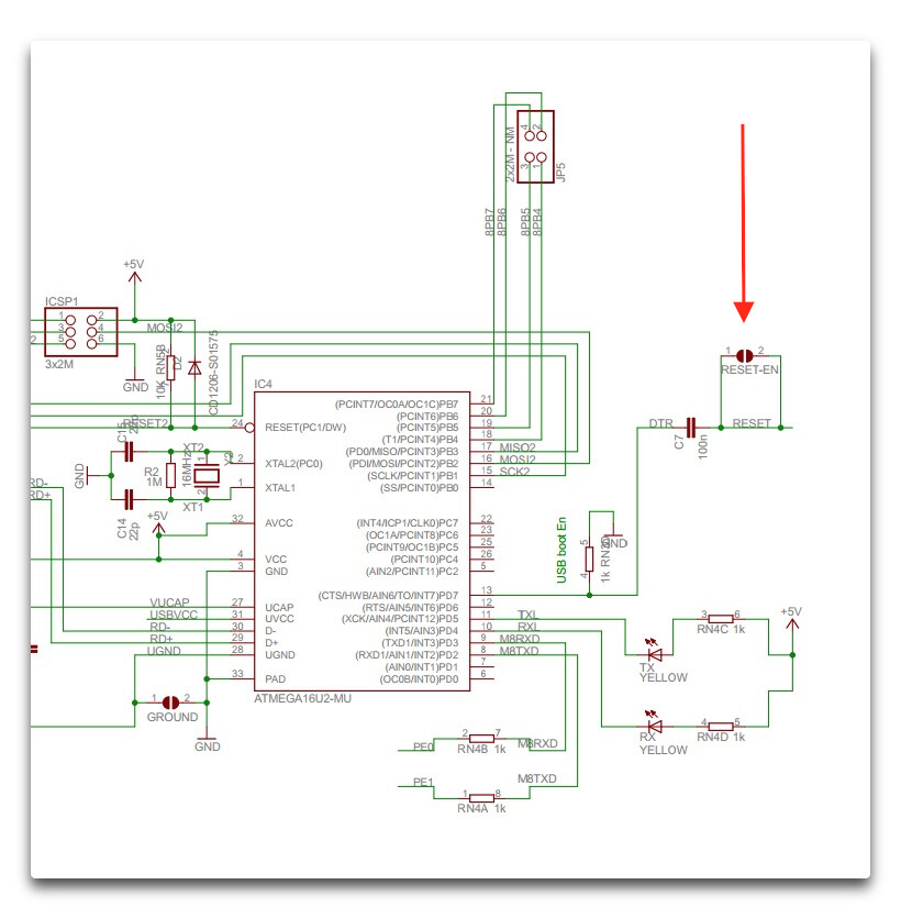 ... c'è un ponticello da poter tagliare e, all'occorrenza risaldare (... ha le apposite piazzole) per abilitare/disabilitare il reset. Si chiama ... Reset-Enable (RESET-EN sulla serigrafia) ... ![]()