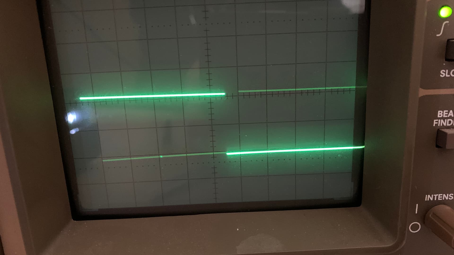 The scope shows a flickering in horizontal direction. You can see the little moving dot bottom left that disturb the signal. In the movie it's very clear...