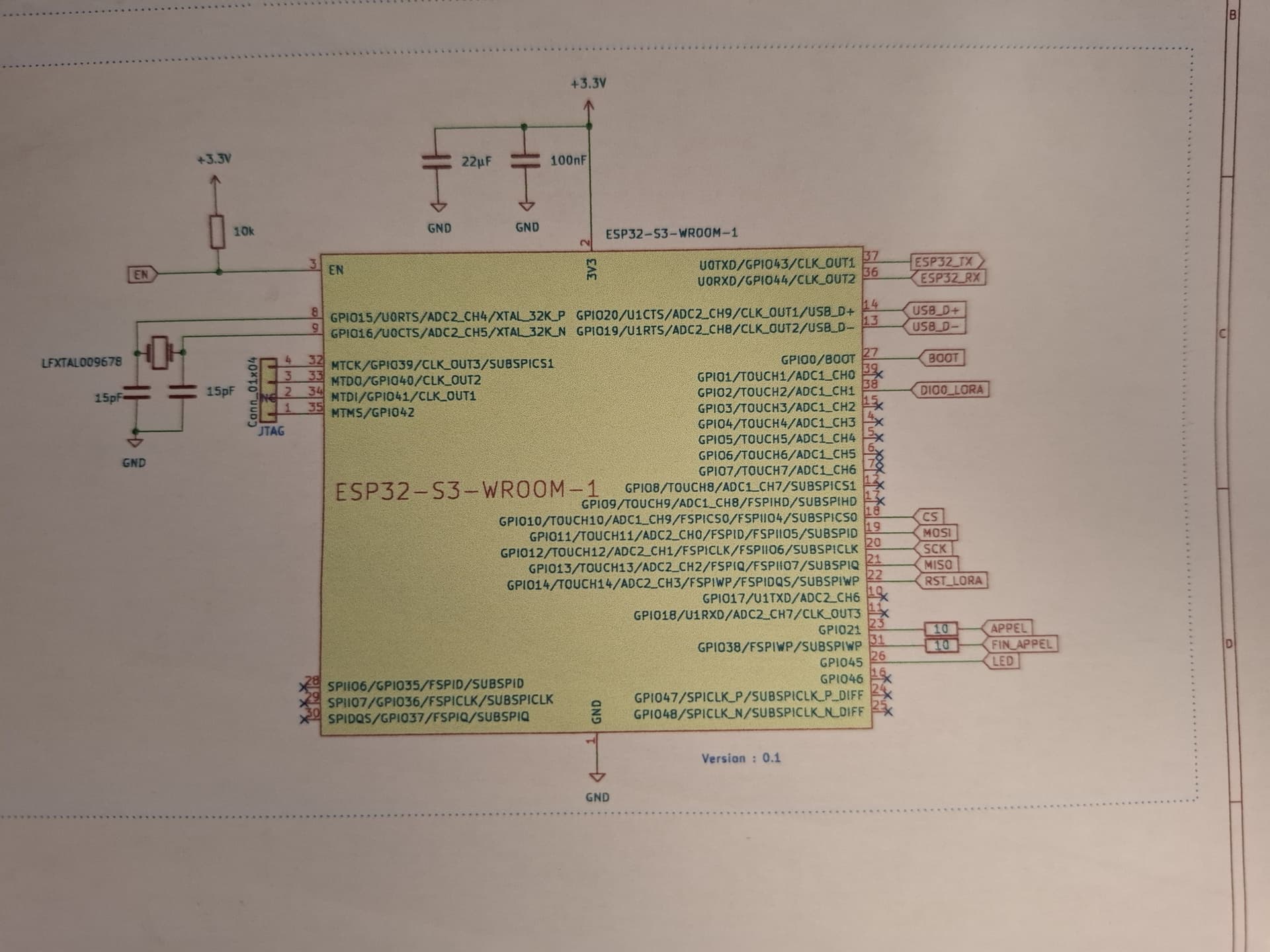 I want to precise that my circit can't change now because it's a card made by a professional and the welds are inside the card. So for my test I got an other cirkit made by myself with the same components exept the ESP32S3-WROOM-1 is replace with an ESP32-WROOM-32.