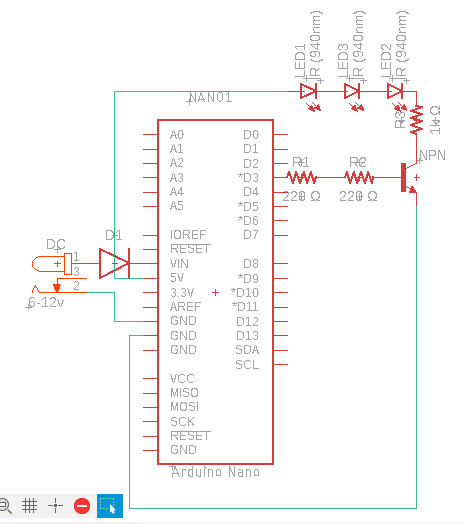 i am using infrared to control a project, but i cant seem to get data sent father than ~36in (~91 cm). i am using an NPN transistor as a data switch for the led to raise the voltage from logic level to 5v. i am using an Arduino Nano. here is a photo of my setup:
