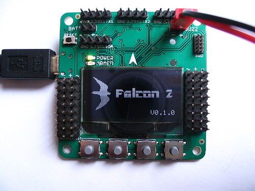 It uses the larger sibling of the SAMD21 micro-controller family: the 32-bit, 48MHz ARM Cortex M0+ SAMD21J18A, (rather than the Zero's and Falcon 1's smaller SAMD21G18A). The Falcon 2 itself is programmable via the micro-controller's own native USB port. This allows the board to be selected and programs to be uploaded directly using the Arduino IDE. It's essentially an Arduino Zero in a flight controller's body.