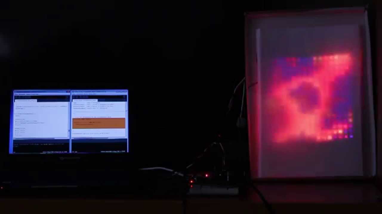 Auf die Wand projizieren ist schwierig, weil man die Matrix nicht in 2 Richtungen gleichzeitig biegen kann. Dafür müssten die LEDs außen auf einer Halbkugel bzw. flachen Schüssel drauf sein, sonst gibt es zu viel Überlappung der projizierten Lichtpunkte.