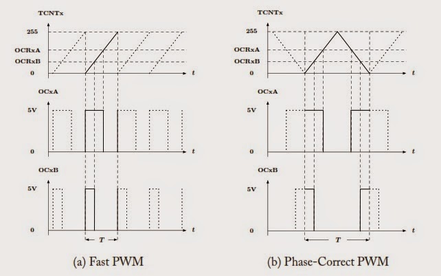 donde "Tcohe = 277 cuentas = 17.7 ms con un pre-scaler de 1024" es la varable donde marco el periodo de la señal que quiero generar pero no se como hacer para conmutar los estados entre 0 y 1 en funcion de las cuentas del ciclo de trabajo tanto del giro como de la traccion que como he mencionado antes los tengo decodificados no en tiempo ,sino en cuentas del contador del timer.