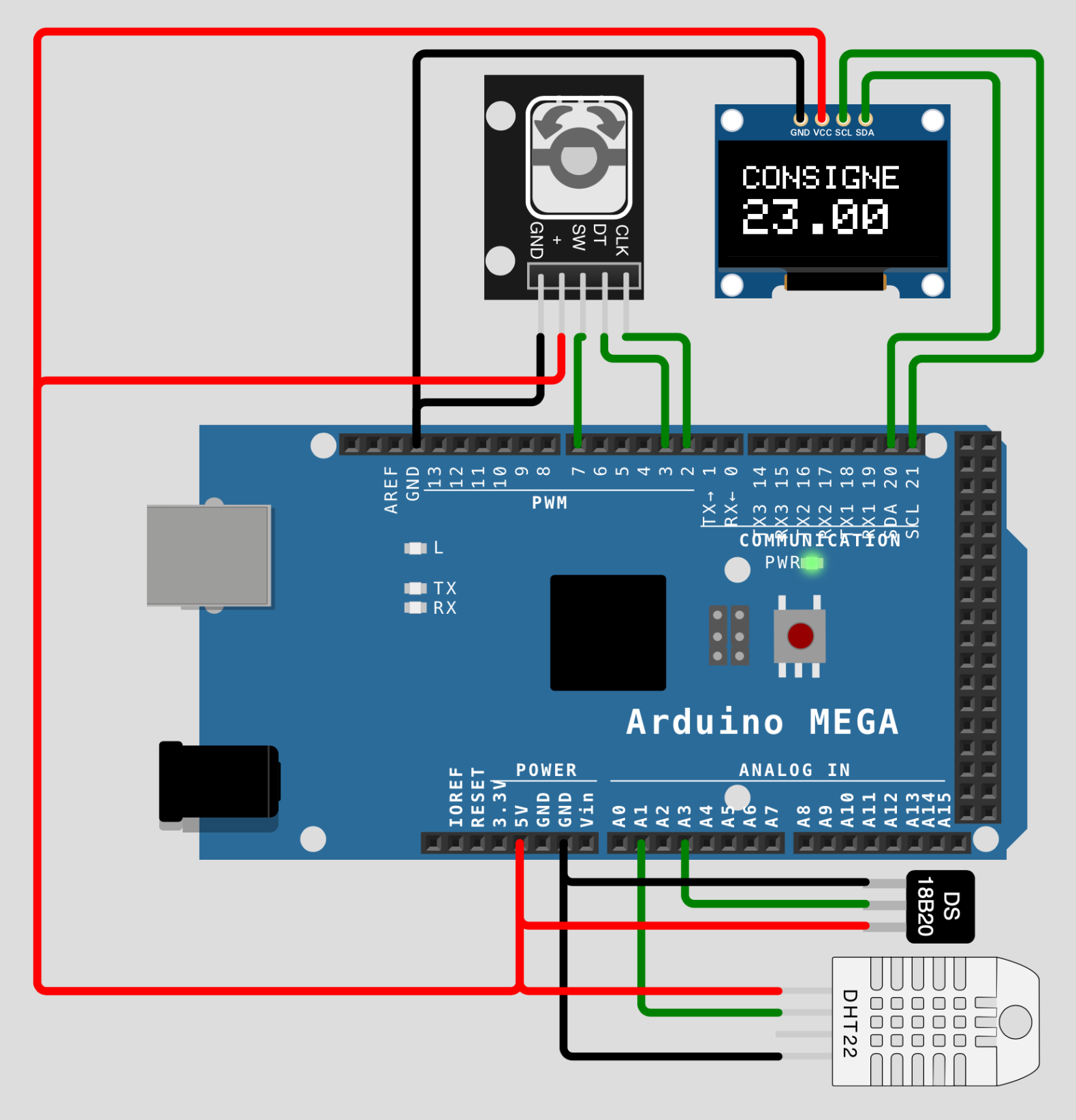 Bon, j’ai corrigé un peu le code pour améliorer les choses, mais j’ai l’impression d’avoir un souci de bounce, quand j’appuie sur le bouton de l’encodeur, le menu de réglage consigne apparait mais seulement une 1/2 secondes et disparait.