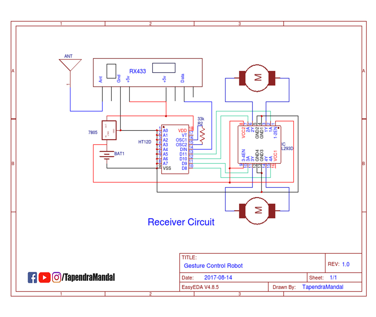 im using ht12e ht12d ic and arduino lilypad and l293d to control 2 motors of car.