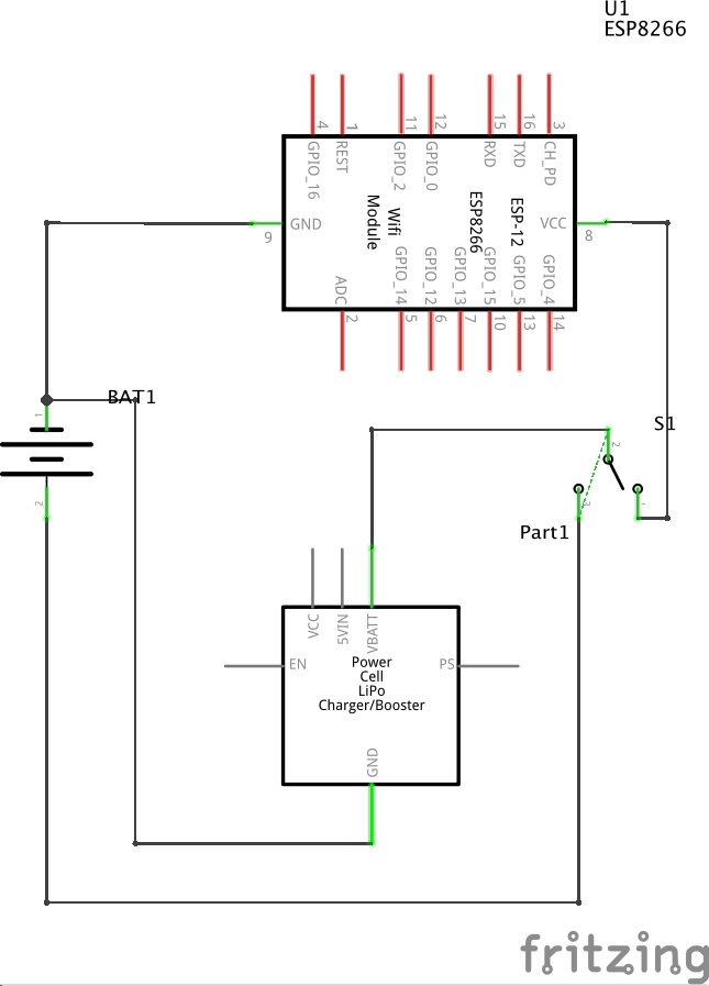 So here's an updated wiring. When charging, the lipo charger needs EM connected to GND, when not charging the EM should be left floating.