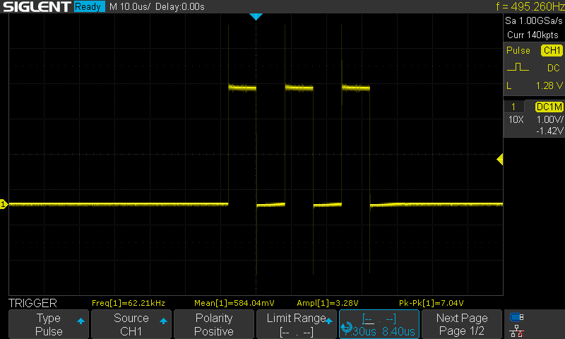 Also, the checkSwitches(); function takes 4.3us to execute once as seen below (without the button being pressed):