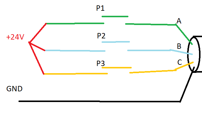 i have to leave the +24V signal pass into 3 wires, A B C, that have a common GND (cable of 4 wires). max wire consumption is 10mA for each.