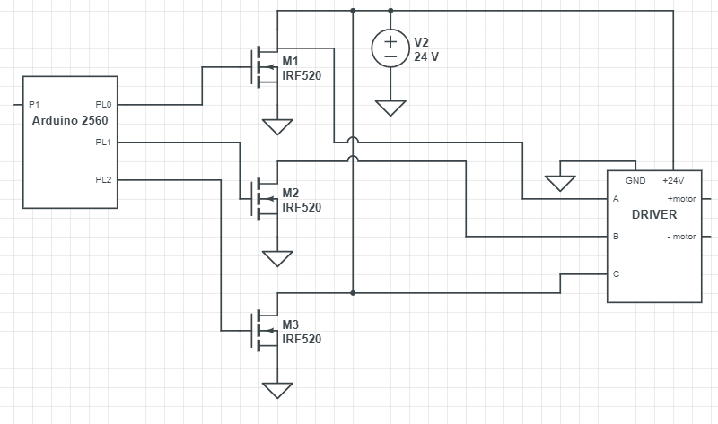 I'm trying to connect this 3 wires to the 3 IRF520 modules as for my previous schema of the module.
