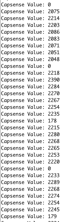 Unstable: 'No Touch Value' ranges from 0 - 2200. 'Touch Value' is around 160000.