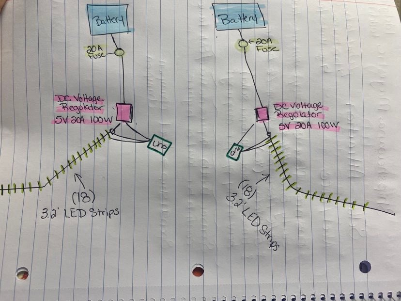 I just got some time to look at the link you sent and read a little more about this forum group. This was a recommendation from someone I know that was trying to help me, but I started to ask questions he was not sure about and he recommended this group. I am super new to working with boards, electronics, and battery power. I have done a lot of research but and I am understanding more as I go and still need someone to explain in that way and I will try and provide as much details as possible. I am a performer and I like to create new things for my acts. This is the largest project idea I have taken on and I feel totally out of my element, like my brain pictures the product but doesn't know how to finish it or if what I am doing is even possible after really digging in and figuring out that LED's pull way more than I thought.