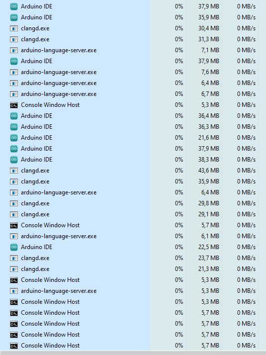 The task manager showed 70 Arduino tasks, see attached Arduino70.jpg and Arduino70+.jpg.