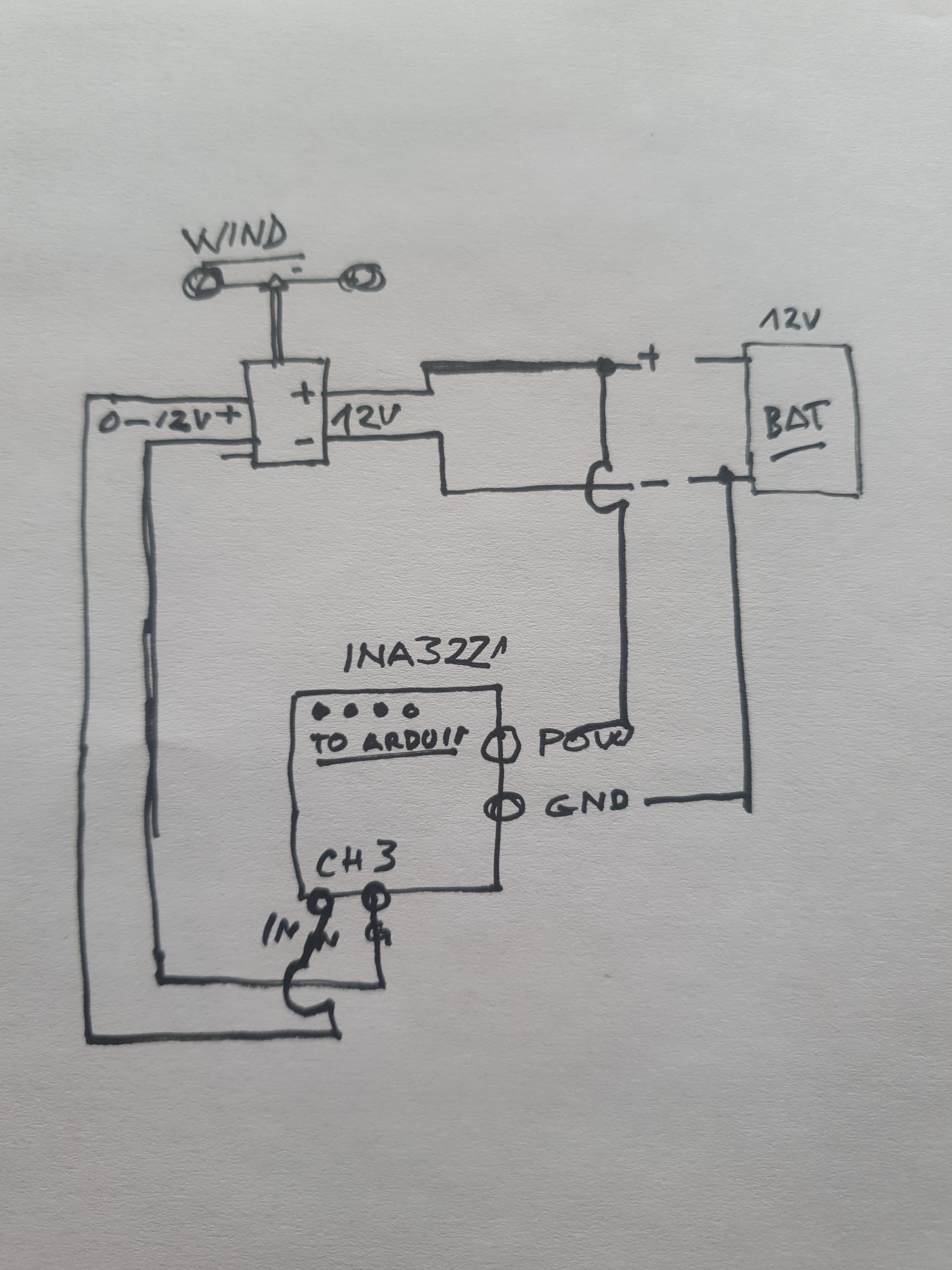 idea is: motor as generator from 0V to 5V being read by INA3221 CH1 and having reult displayed by Arduino (any) via i2c, so, INA3221 VCC (3V3), GND, SDA and SCL to Arduino board and motor output + to CH1 and GND of INA3221 - motor will be turned by wind. Is it feaseable?