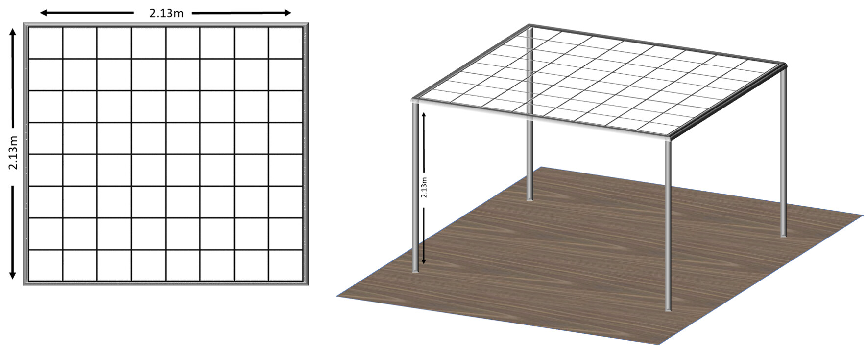 The IR sensors will be suspended from a squared grid net in a suspended ceiling (think bird wire - see link - Polyethylene (PE) netting | black | 80mm mesh size (HM) | twine no. T120 (1,2mm Ø) | width 16m | ENGEL-NETZE). The sensors will be attached to each cross-section and pointed down so that when people walk underneath them, the sensors trigger and send a signal to the mega, which sends to a Macbook Pro (M1) and then to Max 8 (Max/MSP). Each triggered sensor will be attached to a sound file within Max 8 and played out of a loudspeaker in the interactive area.