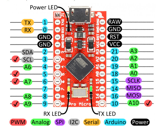 I'm using an Arduino Pro Micro 3.3v, and I'm testing pin 2 and 3, the one for using the I2C.