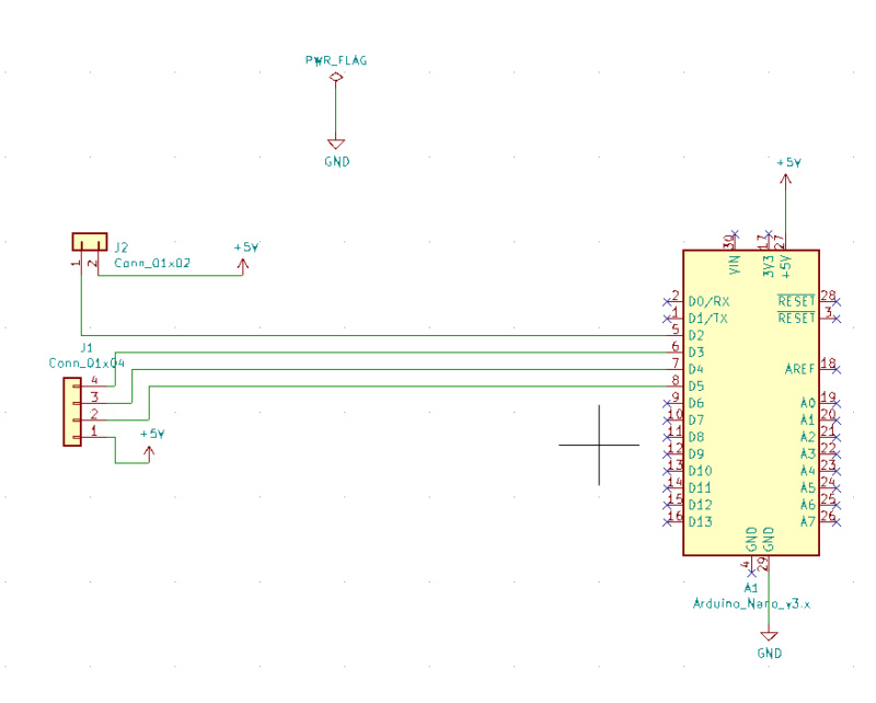 Attention au pas de J2. Apparemment ce n'est pas du 2.54. Pour un PCB ce n'est pas dérangeant, mais pour de la plaquette à pastilles le pas de 2.54 ou 5.08 est imposé. Si c'est le cas, utilise plutôt un Pin_Header.