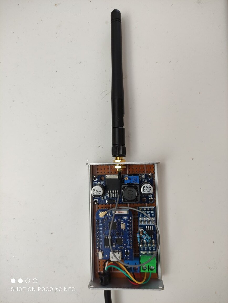 Ho fatto una "scatolina" bellina bellina con dentro uno step-down da 24 a 5 volt, poi un convertitore RS485 a TTL e poi un WeMos con antenna esterna. Ho trovato anche un bellissimo contenitore in alluminio per schermare tutto.