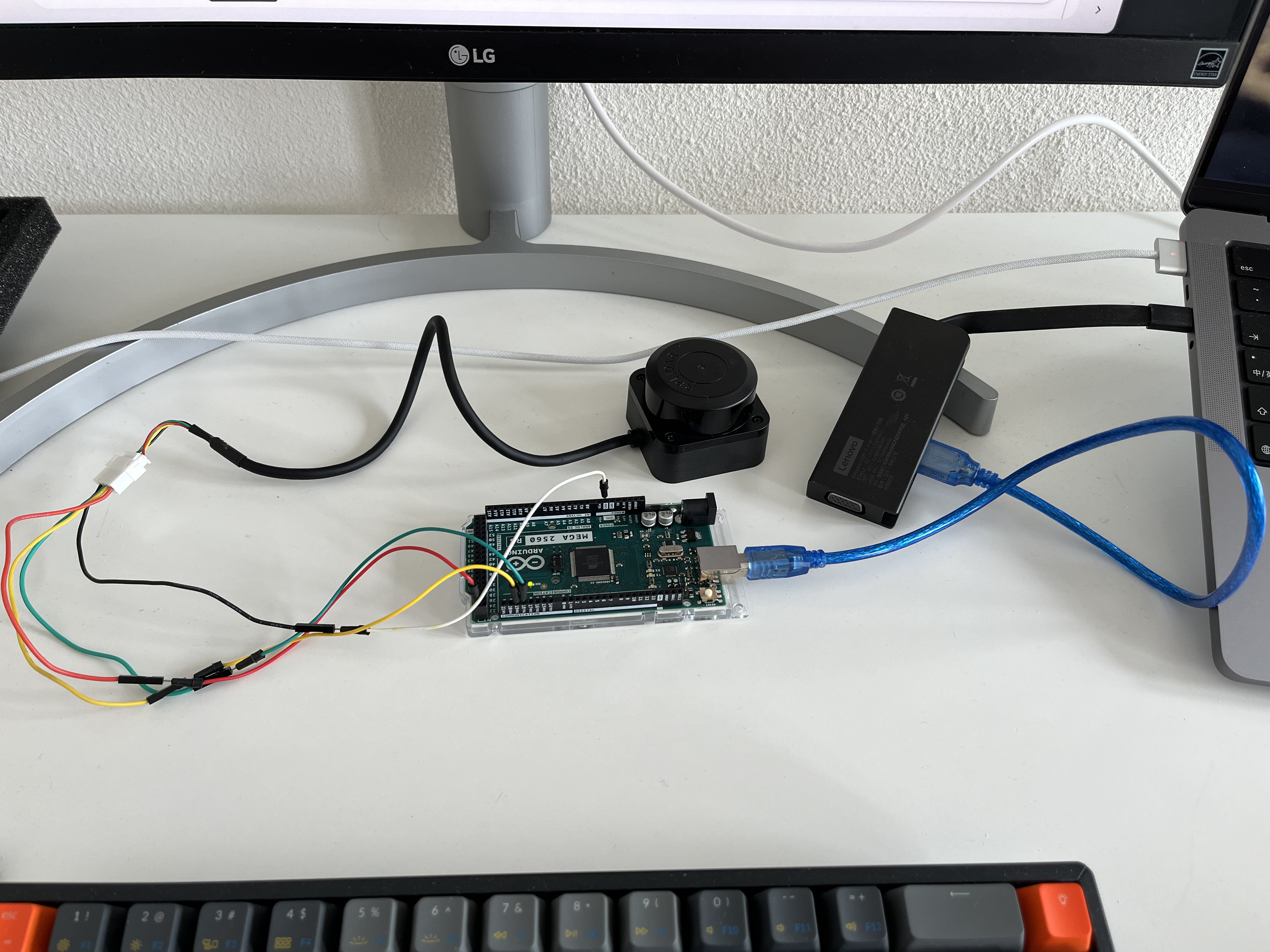 About the power supply, I did some research for the Adruino Mega and RPLidar C1 they both ran properly at 5v and Macbook Pro thunder bot 4 can provide enough supply.