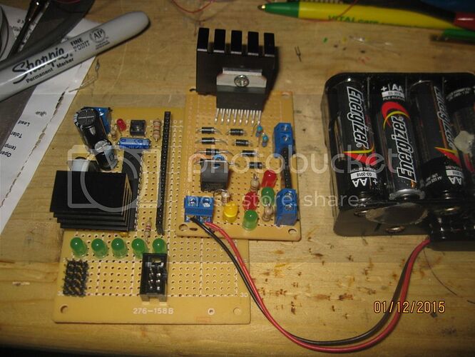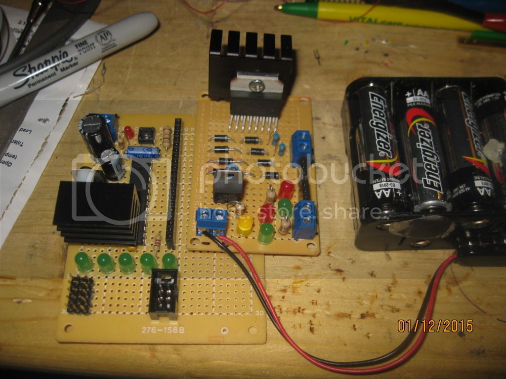 Thanks. I implemented the changes you recommended. One thing I noticed was that one of the leds wired to the motor lugs illuminated once I hooked the 5V from the regulator up.