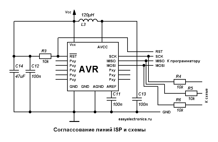 What are examples of such low impedance loads? I figured out if I have simple LEDs on this pins, the ISP works ok.