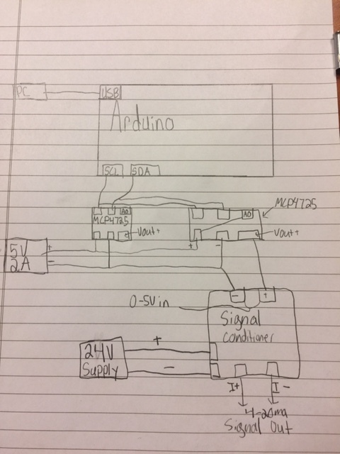 The schematic is rough but it is how I wired it. I did not know the DAC must share a common with the arduino and will make sure to do that. That being said, though why would that cause an issue especially after it ran for hours fine? Thanks, Alex.