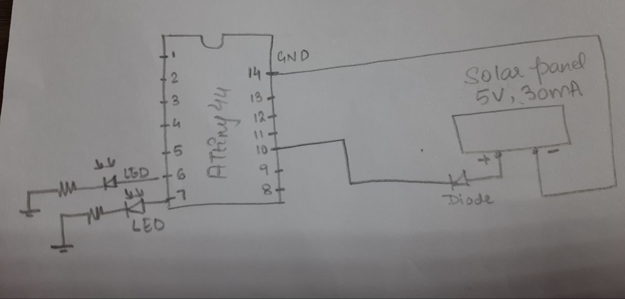 Now, the positive side of solar is going directly to IC physical pin 10 whereas, the negative goes to ground.